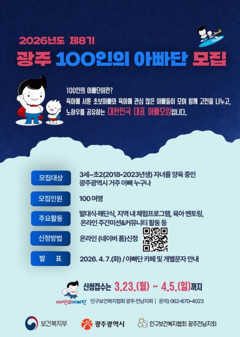 ¡®±¤ÁÖ 100ÀÎÀÇ ¾Æºü´Ü¡¯Àº À°¾Æ¿¡ °ü½É ÀÖ´Â ¾ÆºüµéÀÌ ÇÔ²² ¸ð¿© ÀÚ³à ¾çÀ°¿¡ ÇÊ¿äÇÑ Á¤º¸¿Í °æÇèÀ» °øÀ¯Çϰí, ´Ù¾çÇÑ Ã¼Çè ÇÁ·Î±×·¥¿¡ Âü¿©ÇÏ´Â ¿Â¶óÀΡ¤¿ÀÇÁ¶óÀÎ Ä¿¹Â´ÏƼÀÌ´Ù. ƯÈ÷ Ãʺ¸ ¾ÆºüµéÀÌ °Þ´Â ¾î·Á¿òÀ» ÇØ¼ÒÇϰí Àû±ØÀûÀÎ À°¾Æ Âü¿©¸¦ À¯µµÇÏ´Â µ¥ ¸ñÀûÀÌ ÀÖ´Ù.