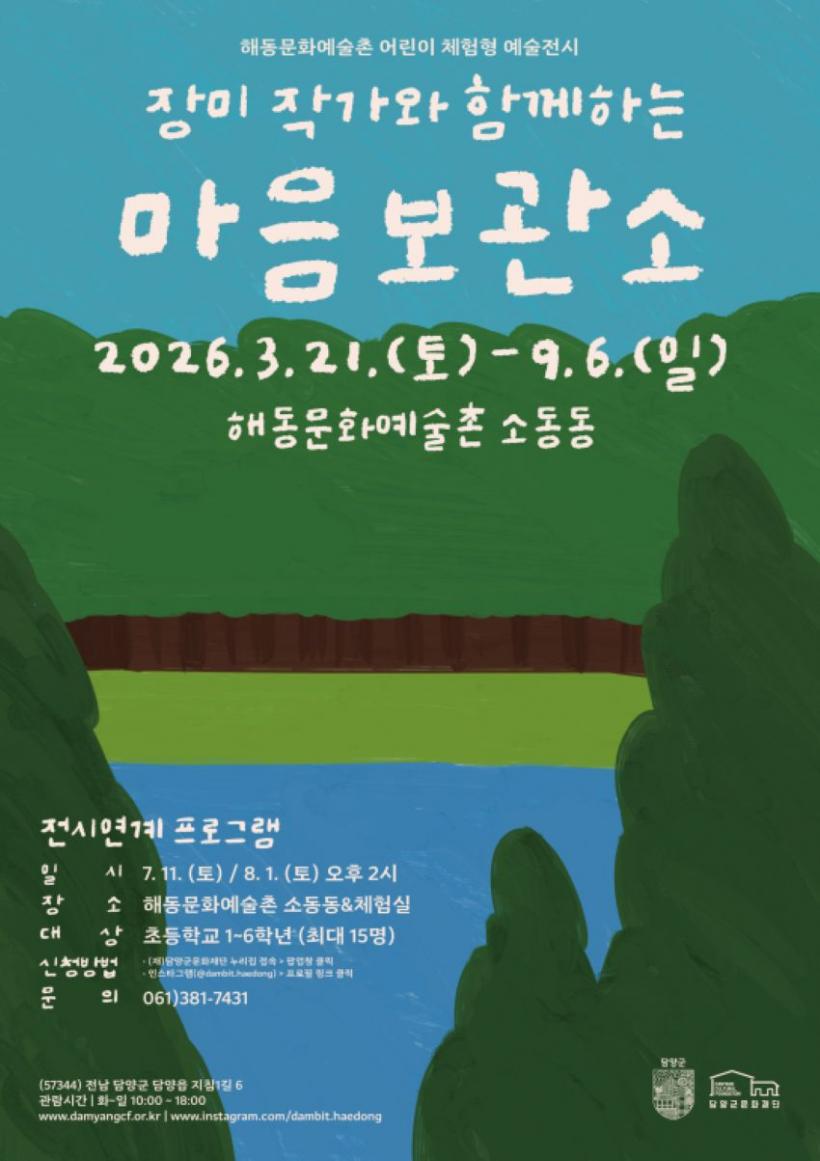 ¼Òµ¿µ¿¿¡¼´Â ¾î¸°ÀÌ Ã¼ÇèÇü ¿¹¼úÀü½Ã ¡ìÀå¹Ì ÀÛ°¡¿Í ÇÔ²²ÇÏ´Â ¸¶À½º¸°ü¼Ò¡í°¡ °³¸·Çß´Ù. ¹Ì·¡¼¼´ë¸¦ ´ë»óÀ¸·Î ¡®¾ÈºÎ¿Í À§·Î¡¯¸¦ Ű¿öµå·Î »ï¾Æ, ¾î¸°À̵éÀÌ ÀÚ½ÅÀÇ °¨Á¤À» ÀνÄÇϰí ŸÀΰú ¿¬°áµÇ´Â °æÇèÀ» ÇÒ ¼ö ÀÖµµ·Ï ¼³°èµÆ´Ù. ƯÈ÷ 7¿ù 11ÀÏ, 8¿ù 1ÀÏ¿¡´Â ÀÛ°¡¿Í ÇÔ²²ÇÏ´Â Àü½Ã¿¬°èÇÁ·Î±×·¥ÀÌ ¿î¿µµÉ ¿¹Á¤ÀÌ´Ù.