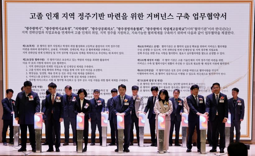 [°ø°£´º½º = ±è¼ö±Ù±âÀÚ] ±¤Áֽñ³À°Ã»(±³À°°¨ ÀÌÁ¤¼±)°ú ±¤Áֽô 24ÀÏ ±¤ÁÖAI±³À°¿ø ´ë°´ç¿¡¼ ÀÌÁ¤¼± ±¤Áֽñ³À°°¨, ±è±â¼÷ ±¤Áֽà ±³À°Ã»³â±¹Àå µîÀÌ Âü¼®ÇÑ °¡¿îµ¥ ¡®°íÁ¹ ÀÎÀç¿Í Áö¿ªÀÇ ¹Ì·¡¸¦ ÇÔ²², Áö¿ª Á¤ÁÖ±â¹Ý ¸¶·Ã °Å¹ö³Í½º ±¸Ãà Çù¾à½Ä¡¯À» °³ÃÖÇß´Ù.