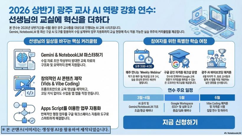 ÀÌ¿Í ÇÔ²² AI Ȱ¿ë ÀÚ°Ý °úÁ¤°ú ¿¬°èÇØ ±³¿øÀÇ µðÁöÅÐ Àü¹®¼ºÀ» °ÈÇϰí, ¿À´Â 6¿ù¿¡´Â ±³»çµéÀÌ ÆÀÀ» ÀÌ·ï AI ±â¼úÀ» ¼ö¾÷°ú ÇàÁ¤ ¾÷¹« Çõ½Å¿¡ Àû¿ëÇÑ »ç·Ê¸¦ ¹ßÇ¥ÇÏ´Â Çà»çµµ ¿ ¿¹Á¤ÀÌ´Ù.