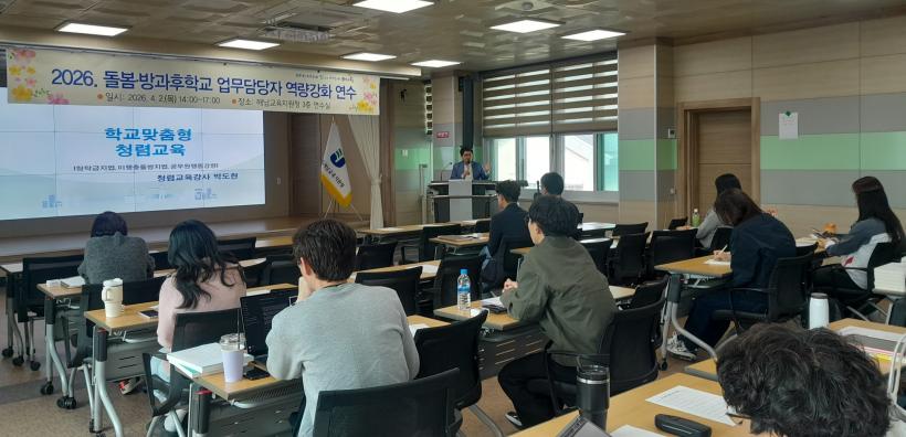 ÇØ³² °ü³» ÃÊ¡¤ÁßÇб³ ±³°¨, ´Ãº½½ÇÀå, ´Ãº½½Ç¹«»ç, ¹æ°úÈÄÇб³ ´ã´ç ±³»ç¸¦ ´ë»óÀ¸·Î ½Ç½ÃµÇ´Â '2026. µ¹º½¡¤¹æ°úÈÄÇб³ ¿î¿µ ±æ¶óÀâÀÌ °È ¿¬¼ö'´Â 2026. ÃÊµî µ¹º½¡¤Áßµî ¹æ°úÈÄÇб³ ±æ¶óÀâÀ̸¦ ¹ÙÅÁÀ¸·Î °ü³» ¾÷¹« ´ã´çÀڵ鿡°Ô µ¹º½Çб³¿Í ¹æ°úÈÄÇб³ ¾÷¹« °ü·Ã µµ¿òÀ» ÁÖ°íÀÚ ÇØ³²µ¿ÃʵîÇб³ ´Ãº½½ÇÀå ÀÌ»êÀ» °»ç·Î ÃʺùÇÏ¿´´Ù.