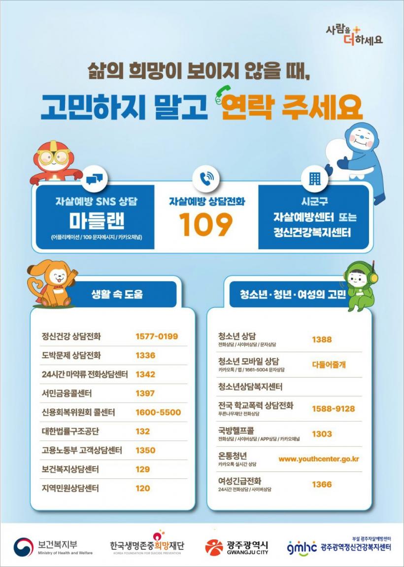 ±¤ÁÖ±¤¿ª½Ã´Â ÀÚ»ìÀ§±â »óȲÀÇ ¼±Á¦Àû ´ëÀÀÀ» À§ÇØ °æÁ¦Àû À§±â, Á¤½Å°Ç° ¹®Á¦ µî º¹ÇÕ À§Çè¿äÀÎÀ» °í·ÁÇÑ ¸ÂÃãÇü Áö¿øÀ» °ÈÇÑ´Ù.