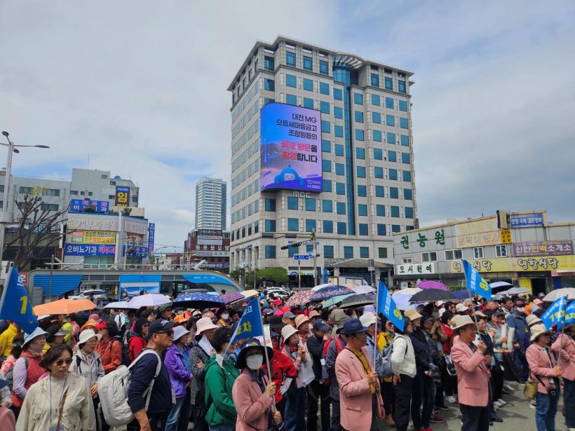 Áö³ 18ÀÏ ´ëÀü MGÀ¸¶ä»õ¸¶À»±Ý°í(ÀÌ»çÀå Á¤±¤¸ð) Á¶ÇÕ¿ø 500¿© ¸íÀº º½³ªµéÀÌ ÀÏÁ¤À¸·Î ´ëÀü¿¡¼ Ãâ¹ßÇÑ Àü¼¼¿Â÷¸¦ ÀÌ¿ëÇØ ¸ñÆ÷¸¦ ã¾Ò´Ù.