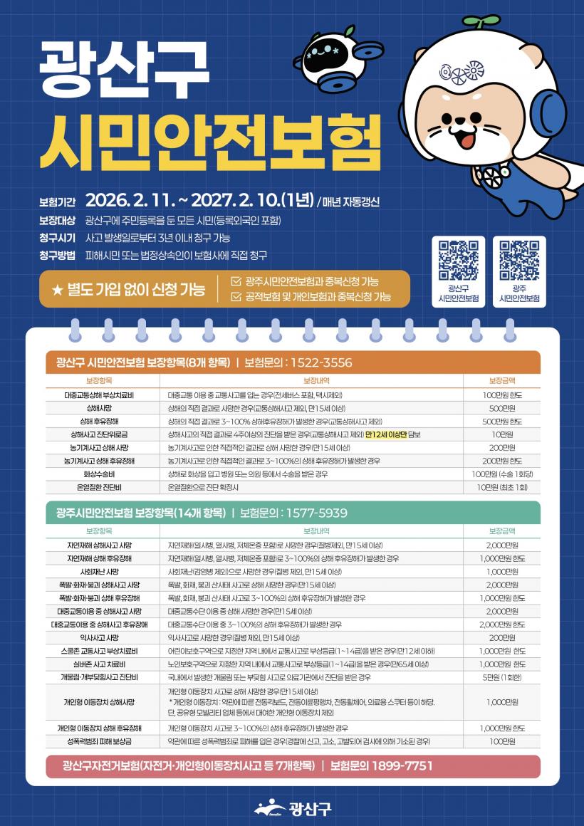½Ç»ýȰ¿¡¼ ´©±¸³ª °ÞÀ» ¼ö ÀÖ´Â ´Ù¾çÇÑ ÇÇÇØ¸¦ º¸ÀåÇϰí, °³Àκ¸Çè°ú Áߺ¹À¸·Î ½Åûµµ °¡´ÉÇÏ´Ù. ±¤»ê±¸´Â ½Ã¹Î¾ÈÀüº¸ÇèÀÇ È¿°ú¸¦ ³ôÀ̱â À§ÇØ ÇÑÃþ ´õ º¸ÀåÀ» °ÈÇß´Ù.