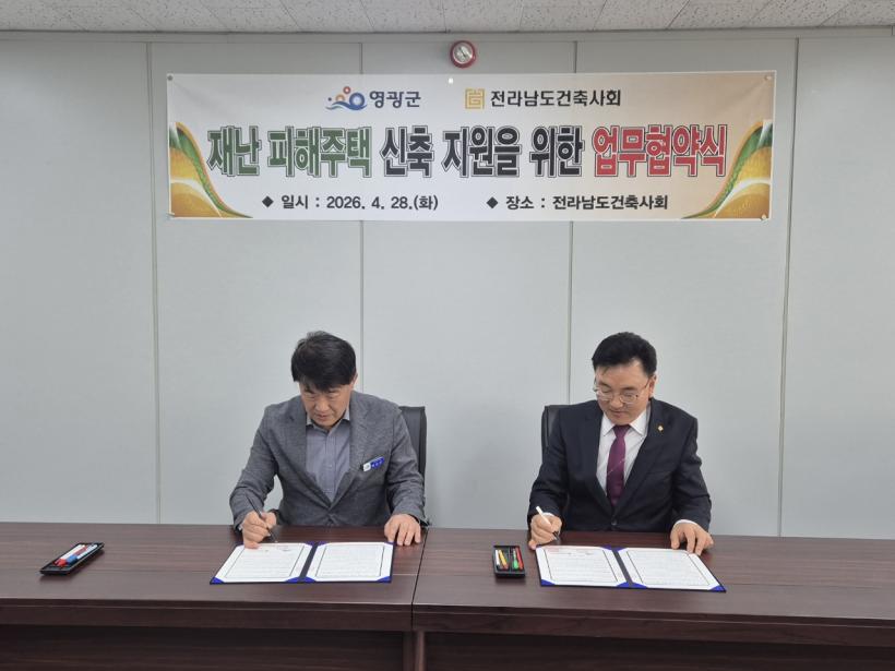 [°ø°£´º½º = ±è¼ö±Ù±âÀÚ] ¿µ±¤±ºÀº Àü¶ó³²µµ°ÇÃà»çȸ¿Í Áö³ 28ÀÏ ¡®Àç³ ÇÇÇØ ÁÖÅà ½ÅÃà Áö¿øÀ» À§ÇÑ ¾÷¹«Çù¾à¡¯À» ü°áÇϰí, Àç³ ÇÇÇØ ÁÖ¹ÎÀÇ ½Å¼ÓÇÑ ÁÖ°Å ¾ÈÁ¤ Áö¿ø¿¡ ³ª¼°Ú´Ù°í ¹àÇû´Ù.