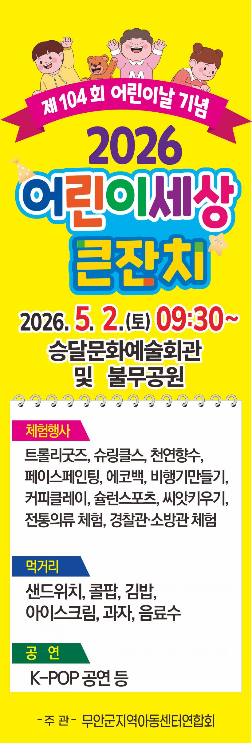 ½ÄÀüÇà»ç¿¡¼´Â ¾î¸°ÀÌÁý ¾Æµ¿µéÀÇ »õõ³âüÁ¶¿Í Áö¿ª¾Æµ¿¼¾ÅÍ ¾Æµ¿µéÀÇ °ø¿¬ÀÌ ÆîÃÄÁö¸ç, ÀÌ¾î ±â³ä½Ä¿¡¼´Â ¸ð¹ü ¾î¸°ÀÌ Ç¥Ã¢°ú ¾î¸°ÀÌÇåÀå ³¶µ¶ÀÌ ÁøÇàµÈ´Ù. ÃàÇϰø¿¬À¸·Î´Â K-POP ´í½º °ø¿¬ µî ´Ù¾çÇÑ ¹«´ë°¡ ¸¶·ÃµÈ´Ù.